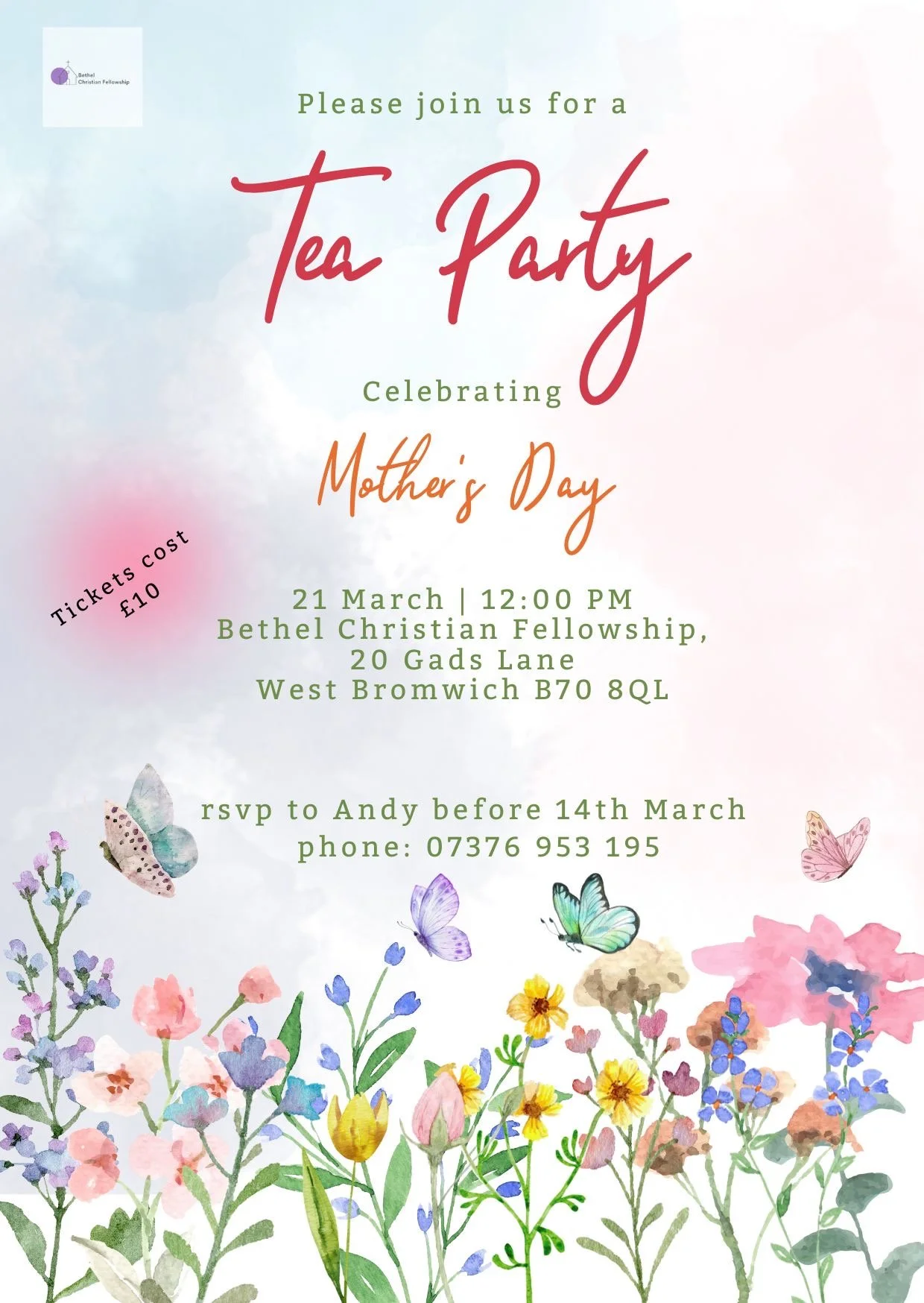Join us for a tea party celebrating Mother’s Day on Saturday the 21st of March at 12:00pm.
